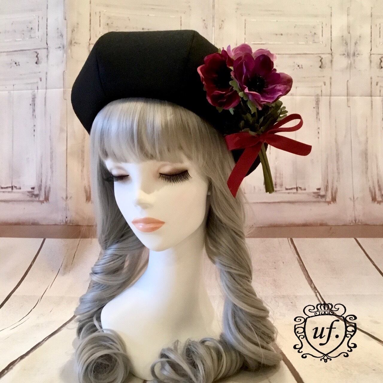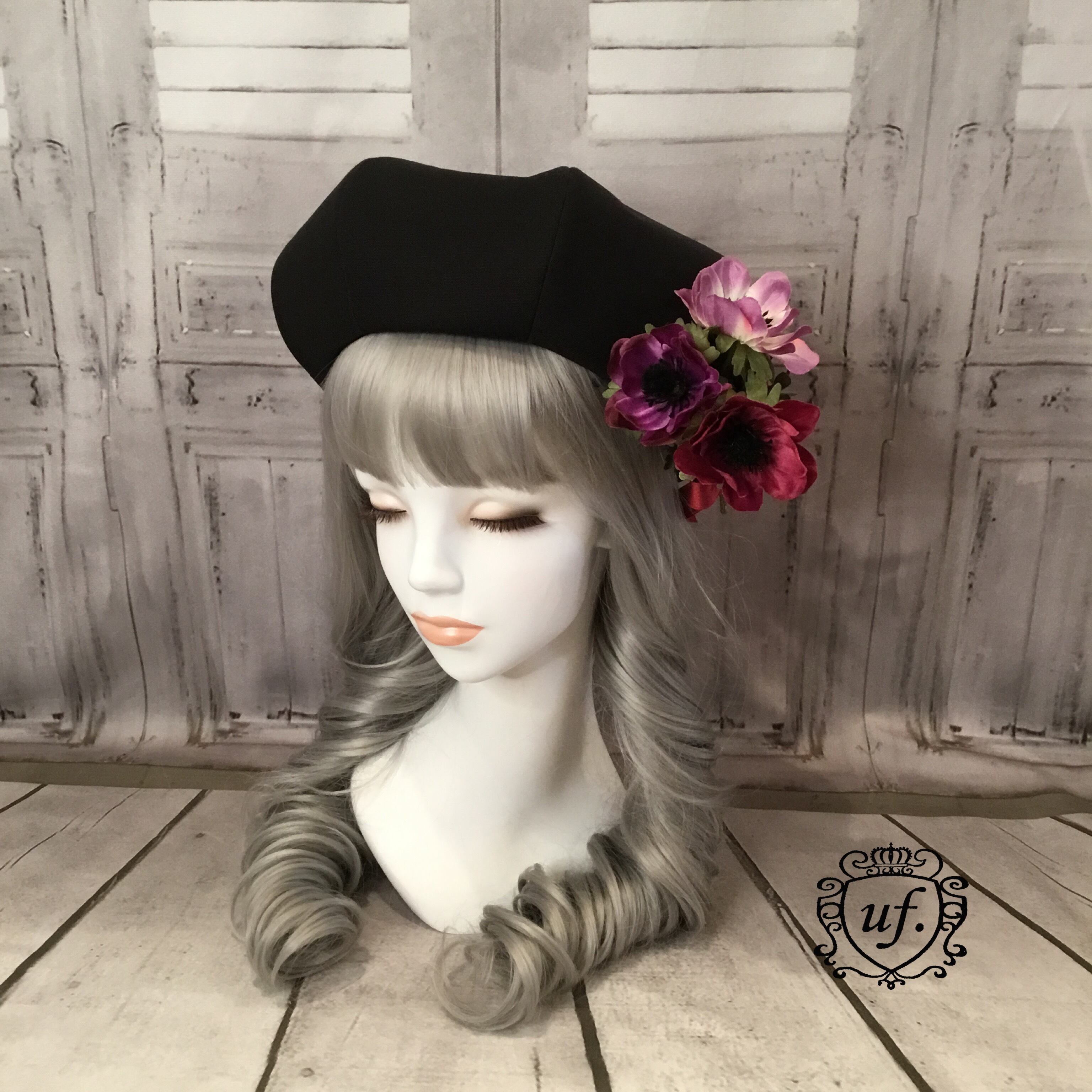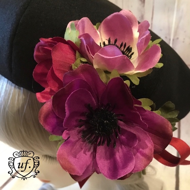 アネモネブーケベレー 本体ブラックフェルト素材(パープル系ブーケ)