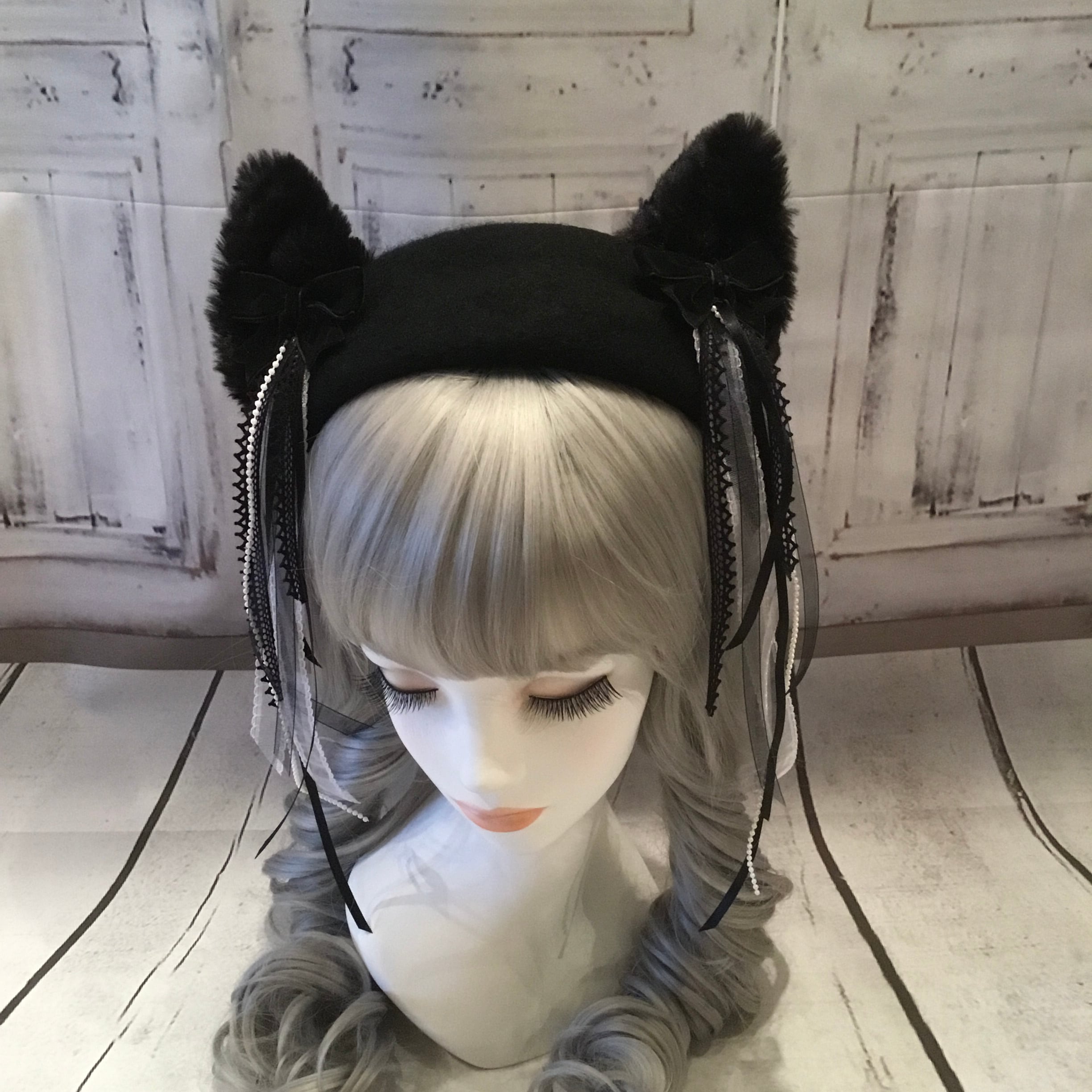 両耳に付けてあるリボンの垂れ飾りは取り外し可能。